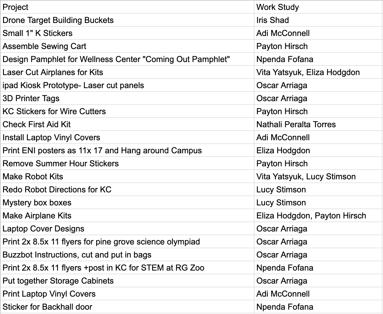 Staffing Ninja: Coordinates and schedules fellow work studies to staff each event.